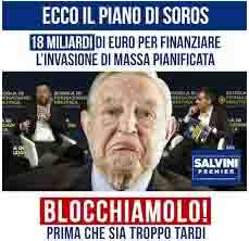 Quali le credenziali di questo “grande amico di Israele”? Nel febbraio 2015, il movimento di estrema destra Casa Pound ha partecipato a un comizio della Lega in Piazza del Popolo a Roma in un clima di grande cameratismo. Nel febbraio di quest’anno, Simone Di Stefano, leader di questa organizzazione che si autodefinisce neo-fascista, si è dichiarato pronto a sostenere un governo a guida Salvini. Inoltre, Salvini tesse legami con ogni espressione dell’estrema destra come “Lealtà Azione” e ammicca a parole d’ordine mussoliniane (“tanti nemici tanto onore”, “chi si ferma è perduto”) proponendo il suo partito come ricettacolo di ogni nostalgia fascista. E non solo solidarizza con il regime illiberale dell’Ungheria di Orbán, ma ne asseconda le peggiori pulsioni nella campagna sulla Teoria della “sostituzione”, secondo cui i flussi migratori verso l’Europa sarebbero lo strumento attraverso il quale una fantomatica élite internazionale (non a caso facente capo a un ebreo, George Soros) intenderebbe sostituire la “razza europea” – bianca e cristiana – con milioni di migranti, preferibilmente musulmani, per distruggere la civiltà occidentale.
